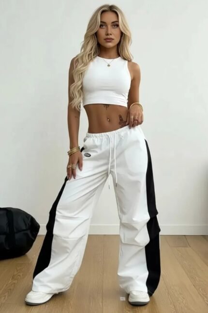 Damen Hose Wide-Leg Zweifarbig – Locker & Trendy