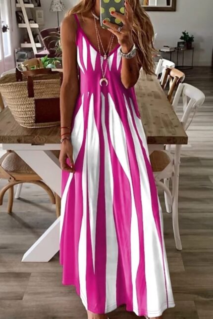 Gestreiftes Spaghettiträgerkleid – Elegantes ärmelloses Kleid mit V-Ausschnitt für Frühling & Sommer