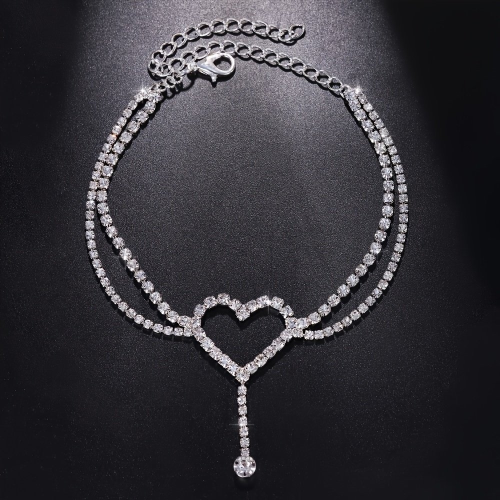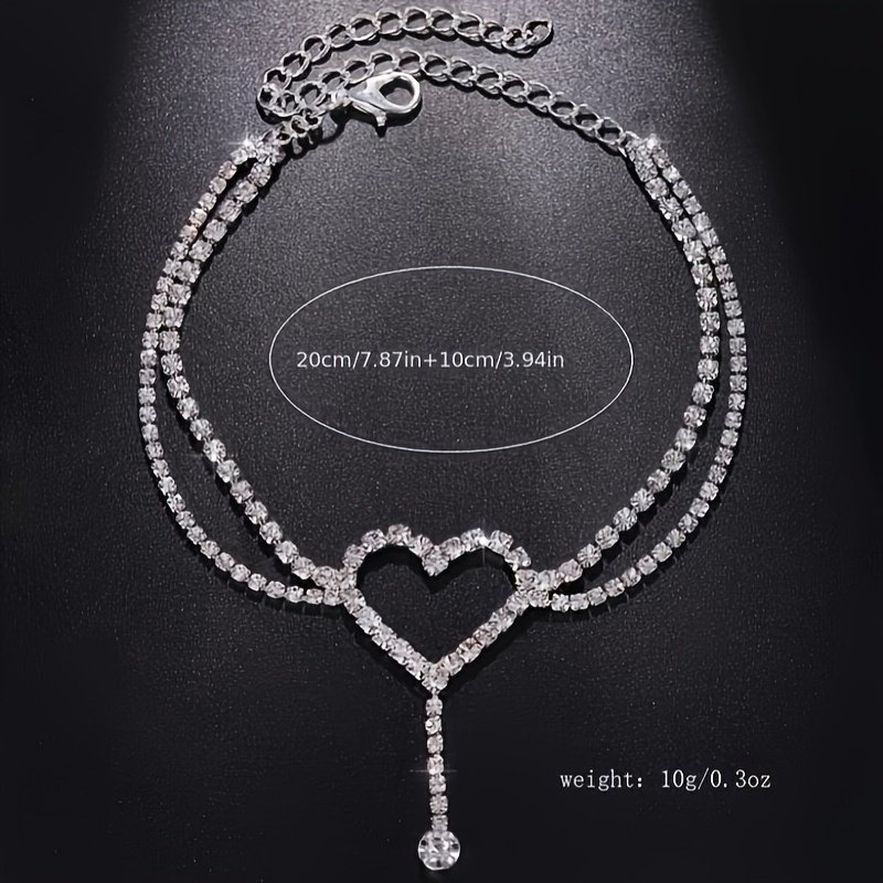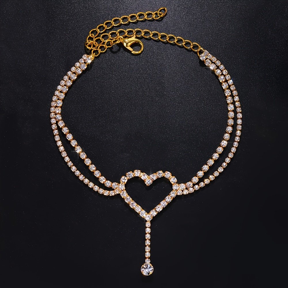 legant Heart Rhinestone Anklet – Double-Layer Copper Crystal Jewelry