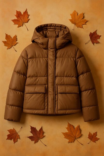 Doudoune femme marron – Veste d’hiver tendance avec capuche & cordon de serrage