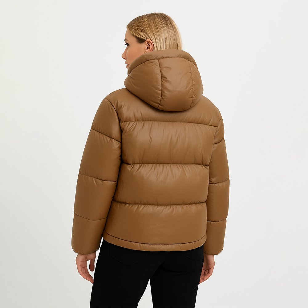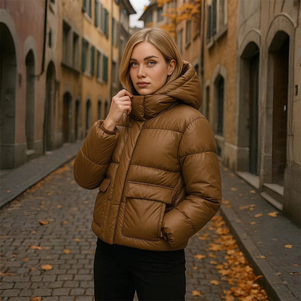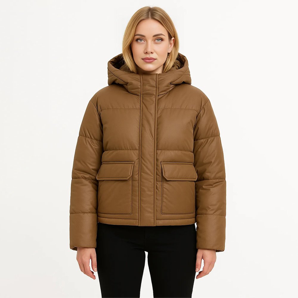 Doudoune femme marron – Veste d’hiver tendance avec capuche & cordon de serrage