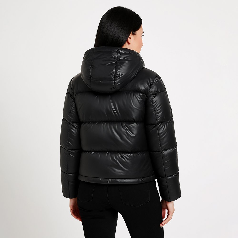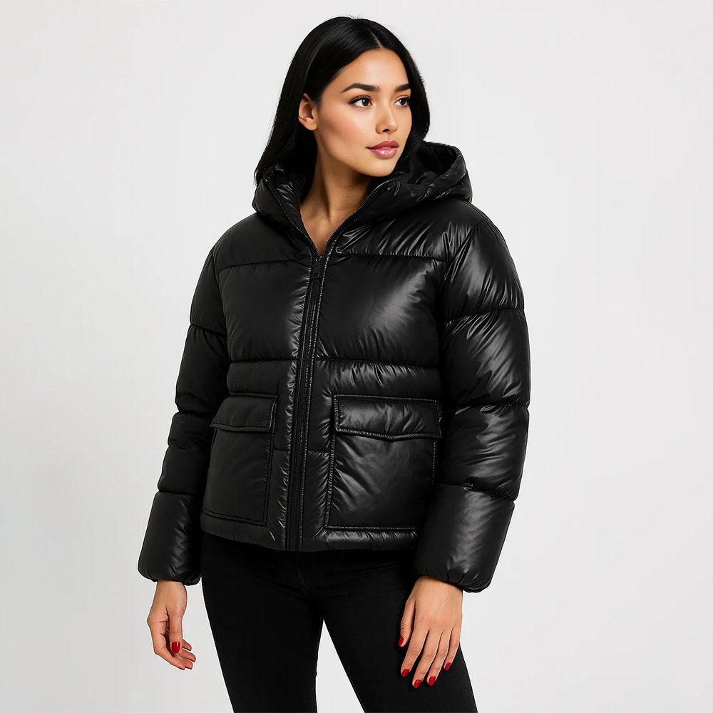 Doudoune Femme Noire – Veste Matelassée à Effet Brillant