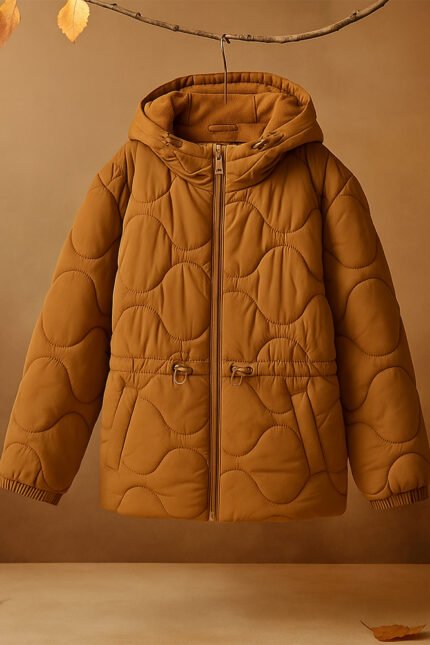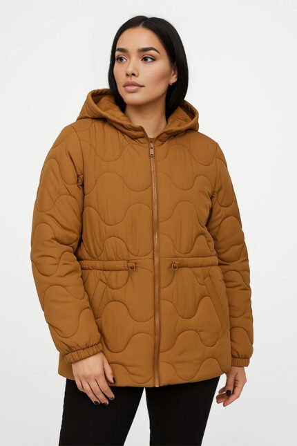 Doudoune femme marron – Veste d’hiver tendance avec capuche & cordon de serrage