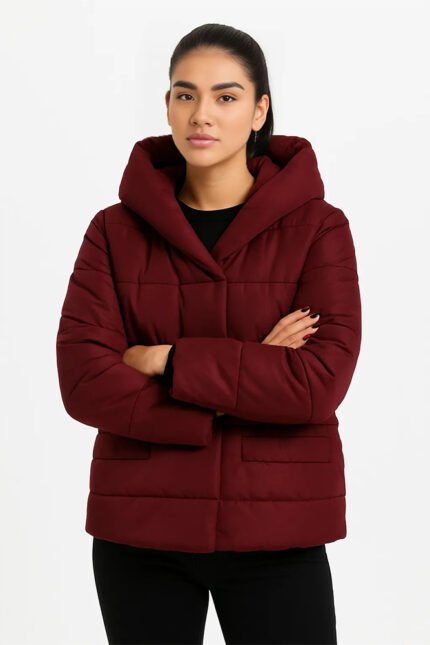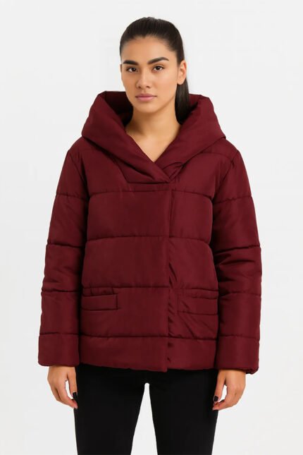 Doudoune Femme Bordeaux – Veste Matelassée à Col Large