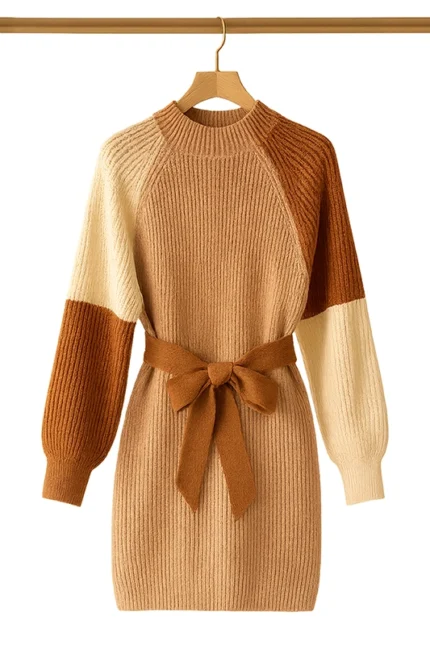 Mini-robe bodycon en maille côtelée pour femme – Mélange extensible polyester-spandex