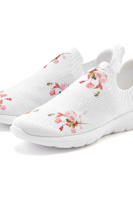 Damen Slipper Sportschuhe mit Blumenstickerei – Leicht & Elegant
