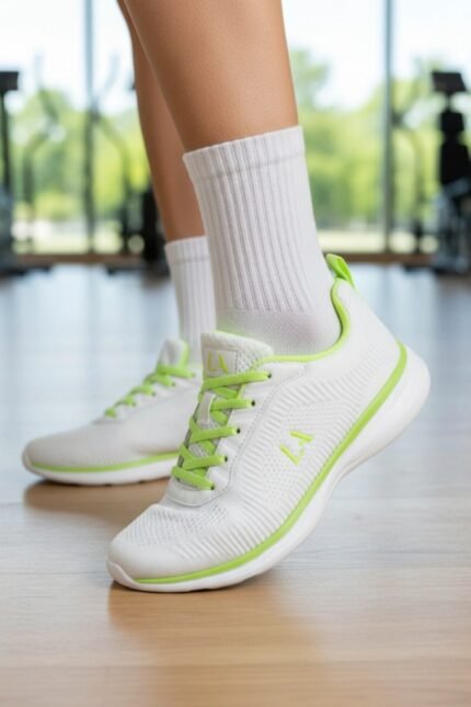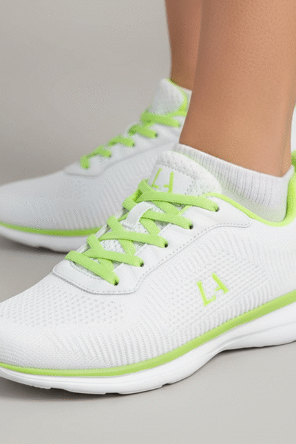 Damen Sneaker Weiß mit Neon Grün Akzenten – Atmungsaktiv & Leicht