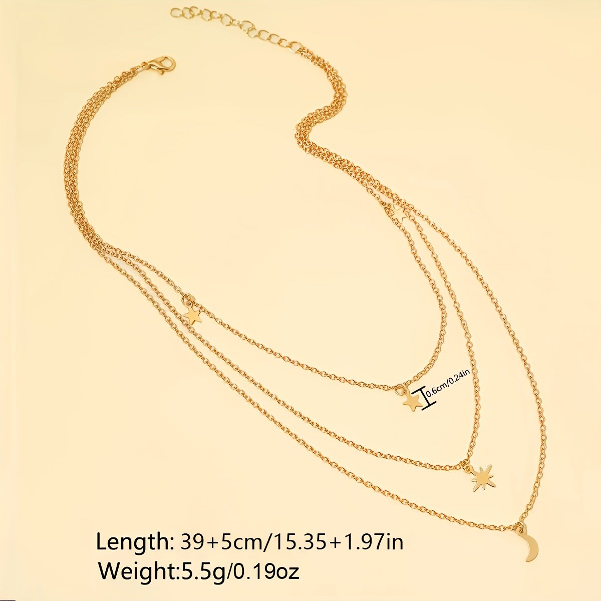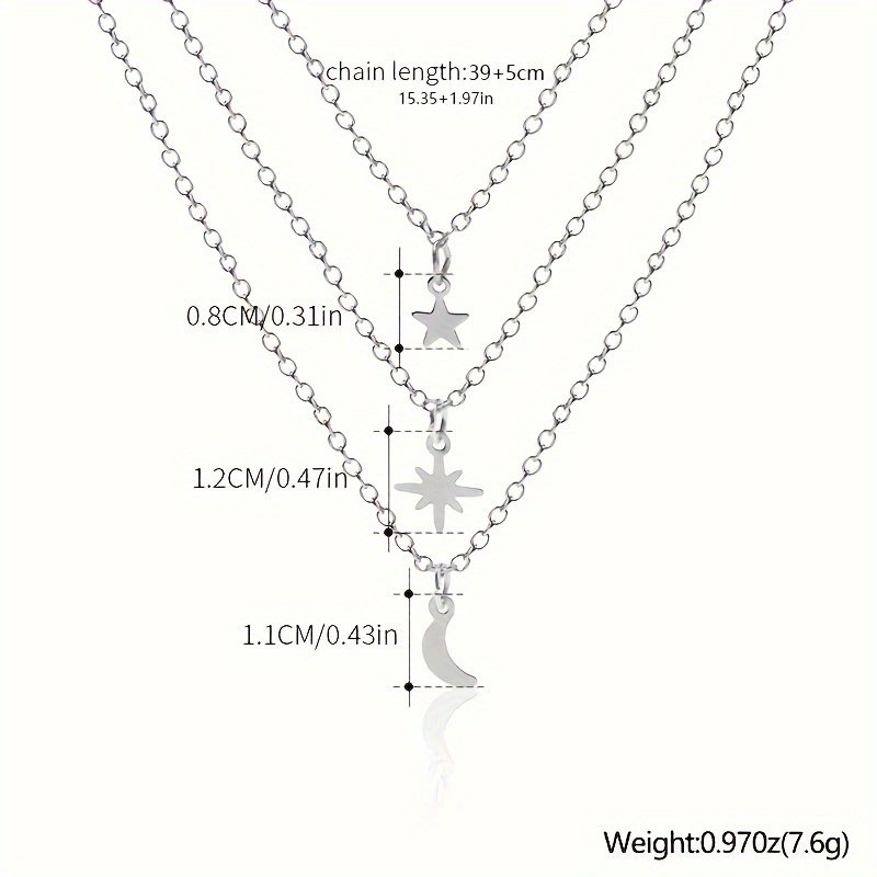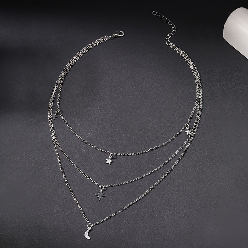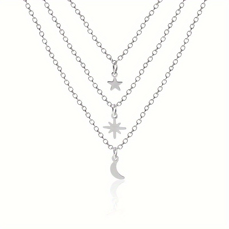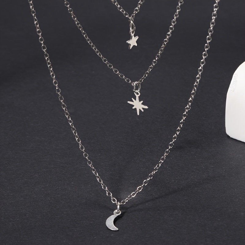 Mehrlagige Stern- und Mond-Anhänger Halskette – Trendiger Lagenlook