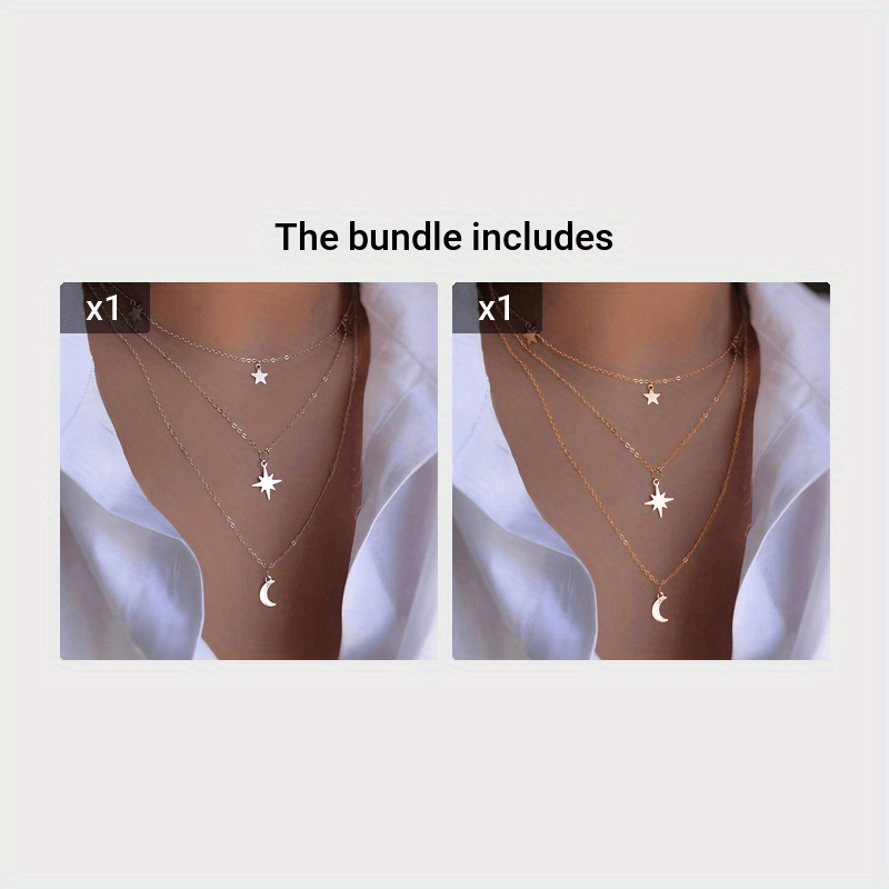 Mehrlagige Halskette mit filigranen Stern- und Mondanhängern aus hochwertiger, hautfreundlicher Legierung – vielseitig kombinierbar und perfekt für Alltag und besondere Anlässe.