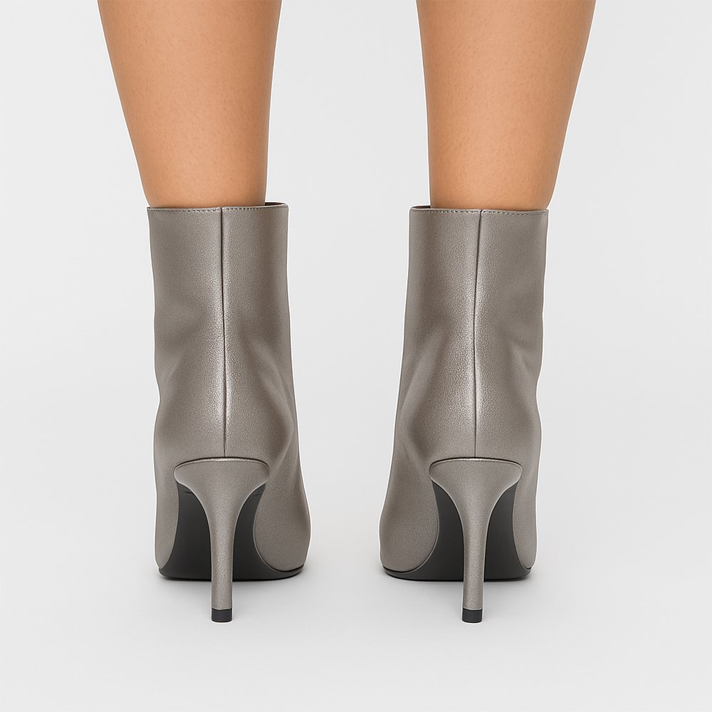 Exklusive Damen Ankle Boots in Silber-Grau mit Stiletto-Absatz. Modern, edel und vielseitig – perfekt für Abendlooks & besondere Anlässe.