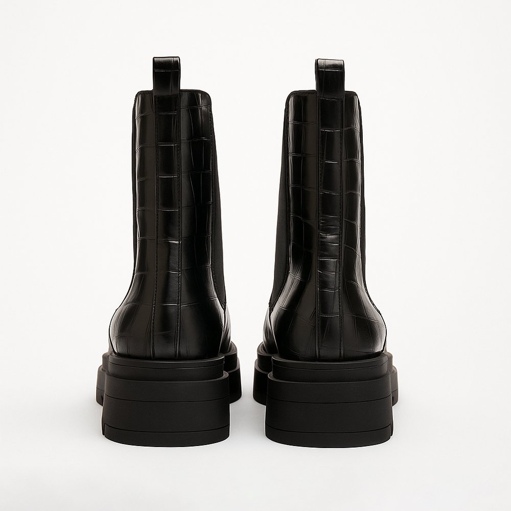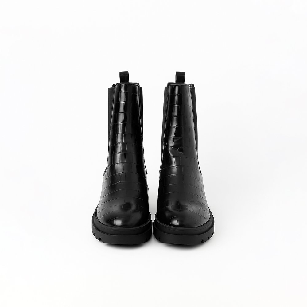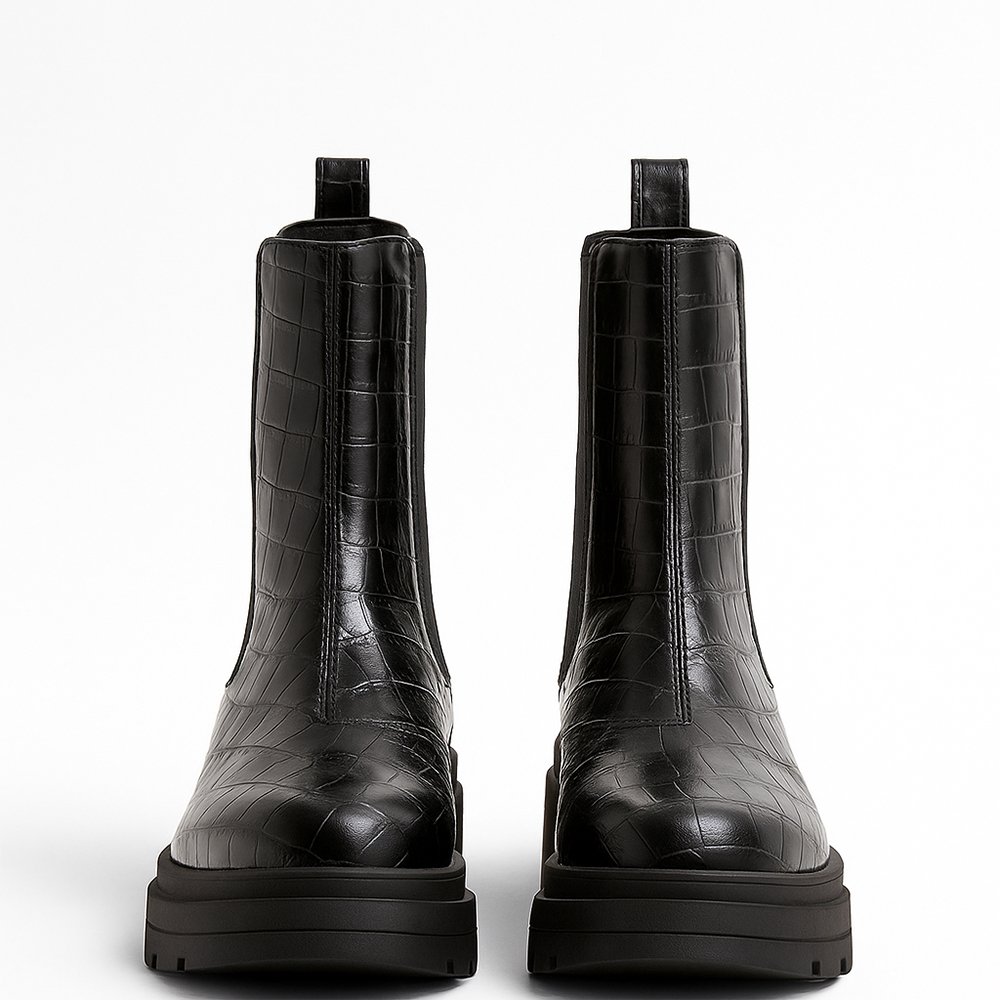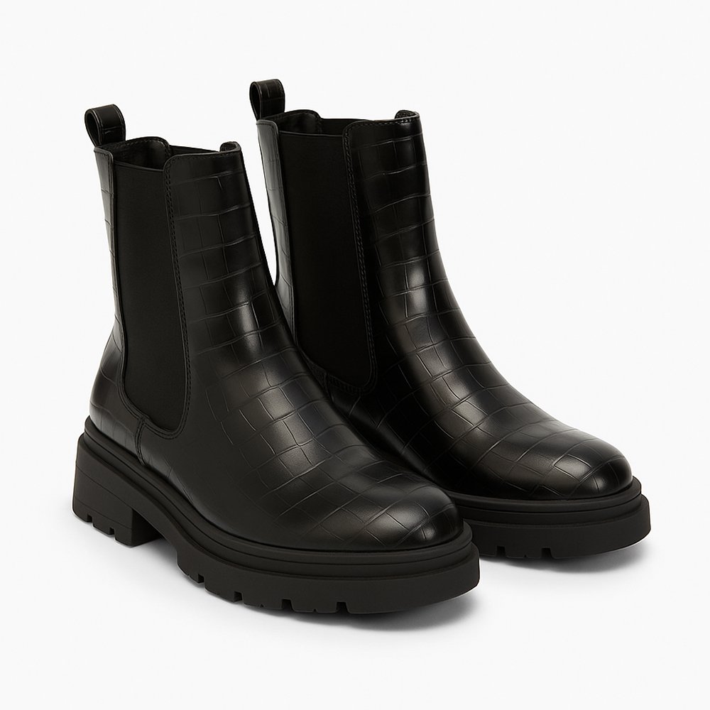 Damen Chelsea Boots Schwarz – Chunky Stiefeletten mit Kroko-Optik