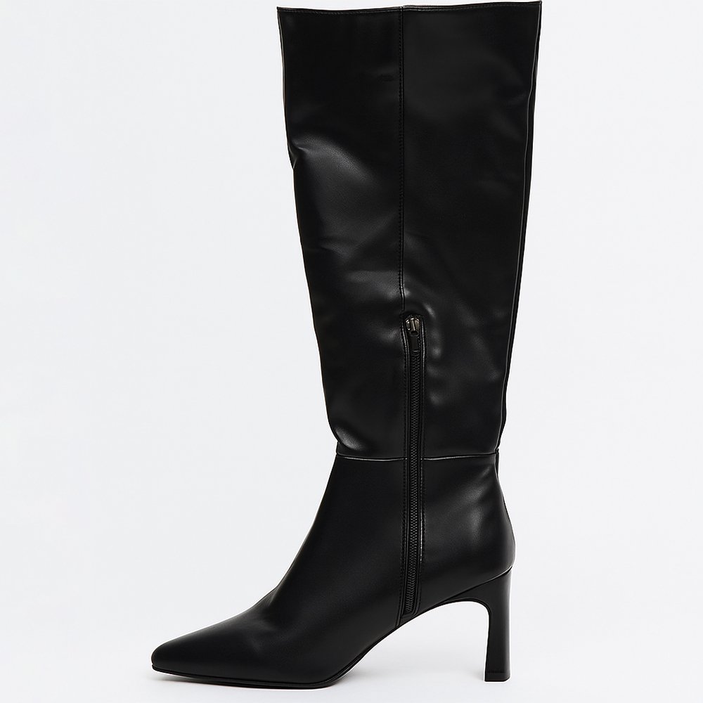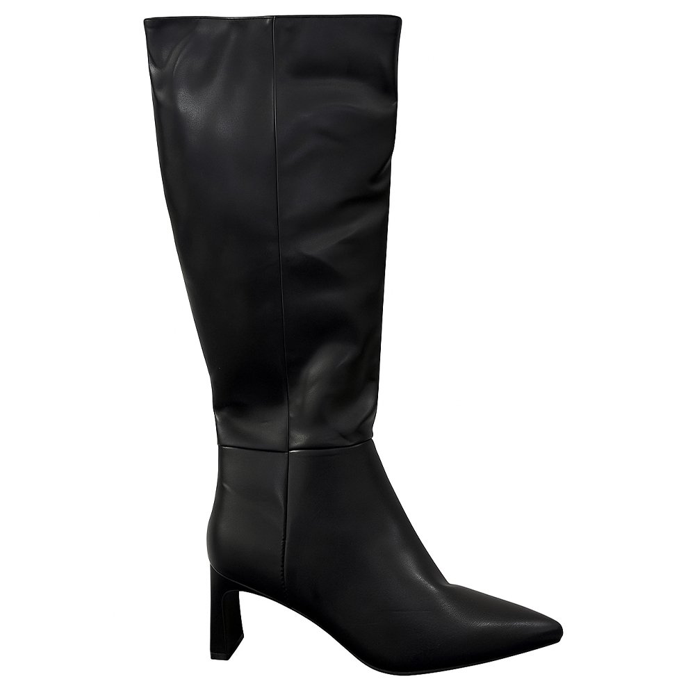 Damen High Heel Stiefel Schwarz – Kniehohe Stiefel mit Blockabsatz aus Kunstleder