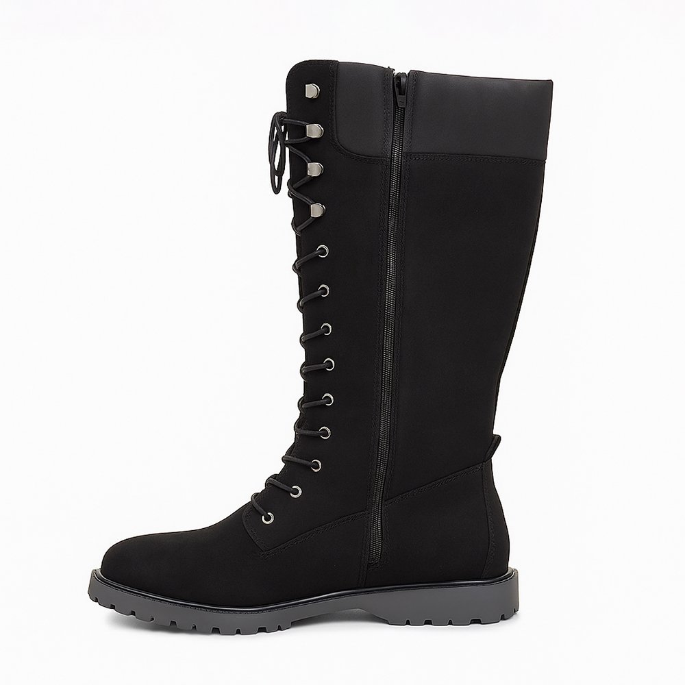 Damen Schnürstiefel Schwarz – Kniehohe Boots mit Reißverschluss & Profilsohle