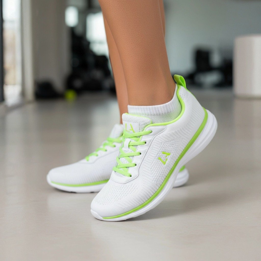 Damen Sneaker Weiß mit Neon Grün – leicht, stylisch & atmungsaktiv.