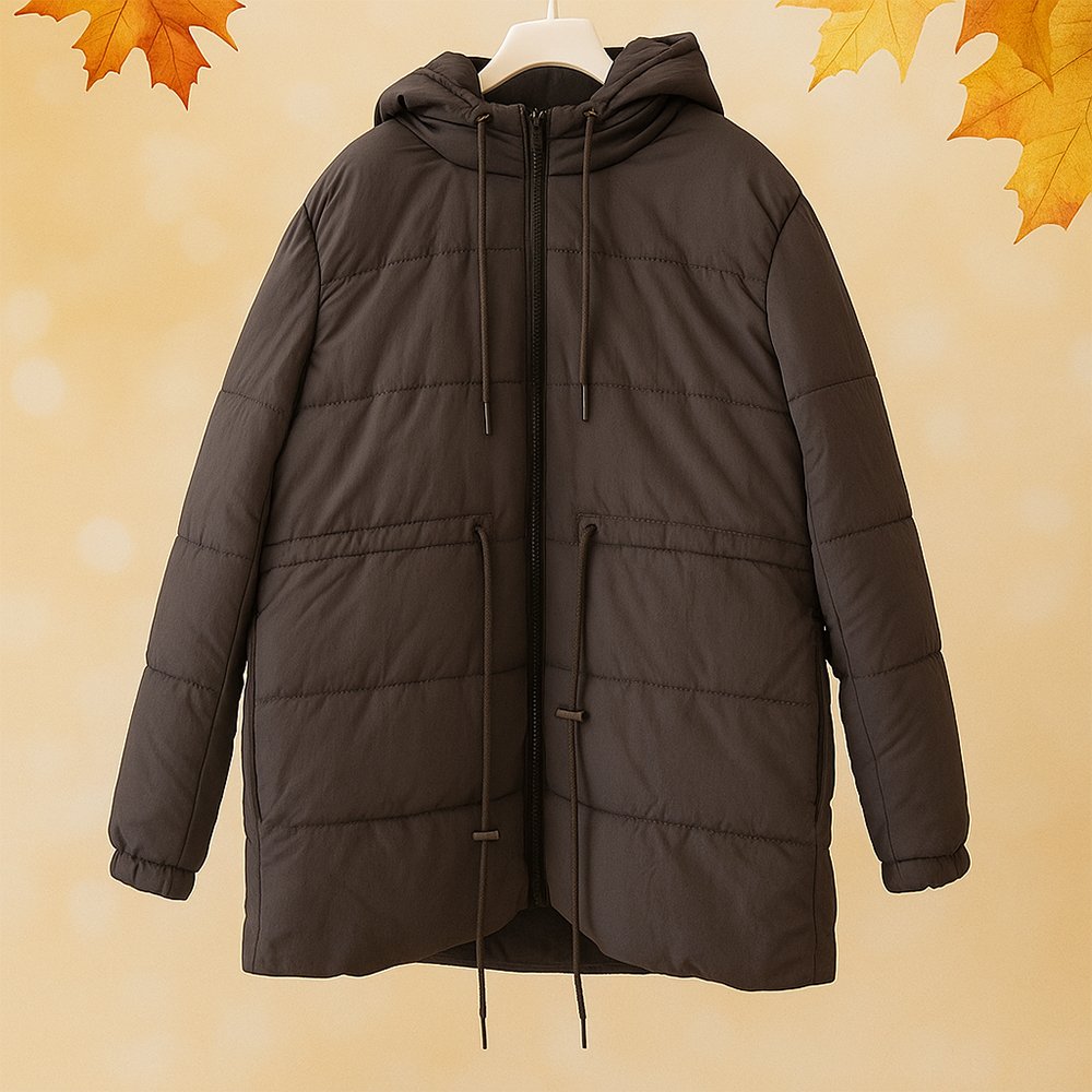 Geacă matlasată damă maro – Geacă de iarnă modernă cu glugă & șnur de strângere