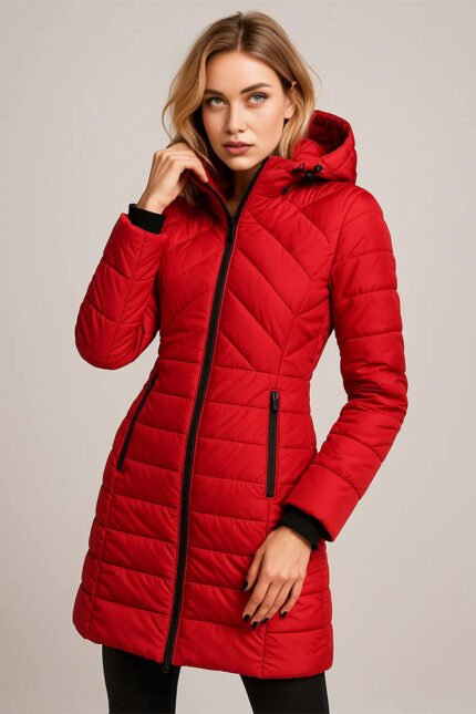 Geacă Puff Damă Albastră – Geacă de Iarnă Sportivă cu Glugă