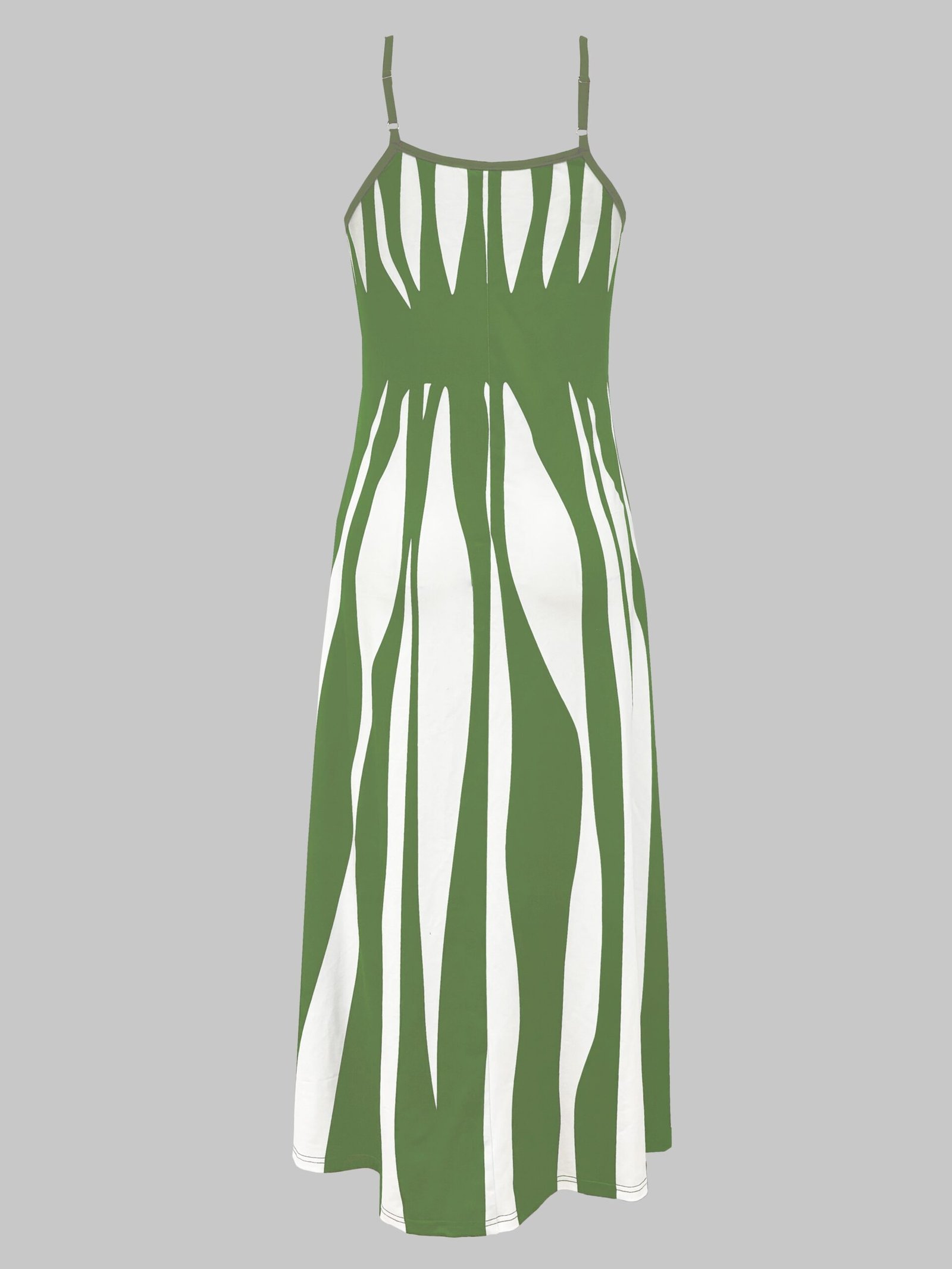 Rochie cu bretele subțiri în dungi – Rochie elegantă, fără mâneci, cu decolteu în V, pentru primăvară și vară